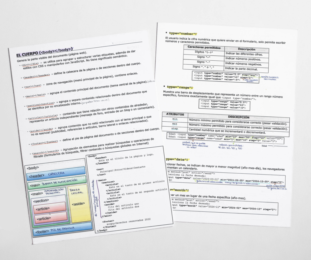 4 documentos en PDF que explica detalladamente las diversas etiquetas y sus atributos, con anotaciones adicionales que te ayudarán a comprender y dominar el lenguaje HTML.